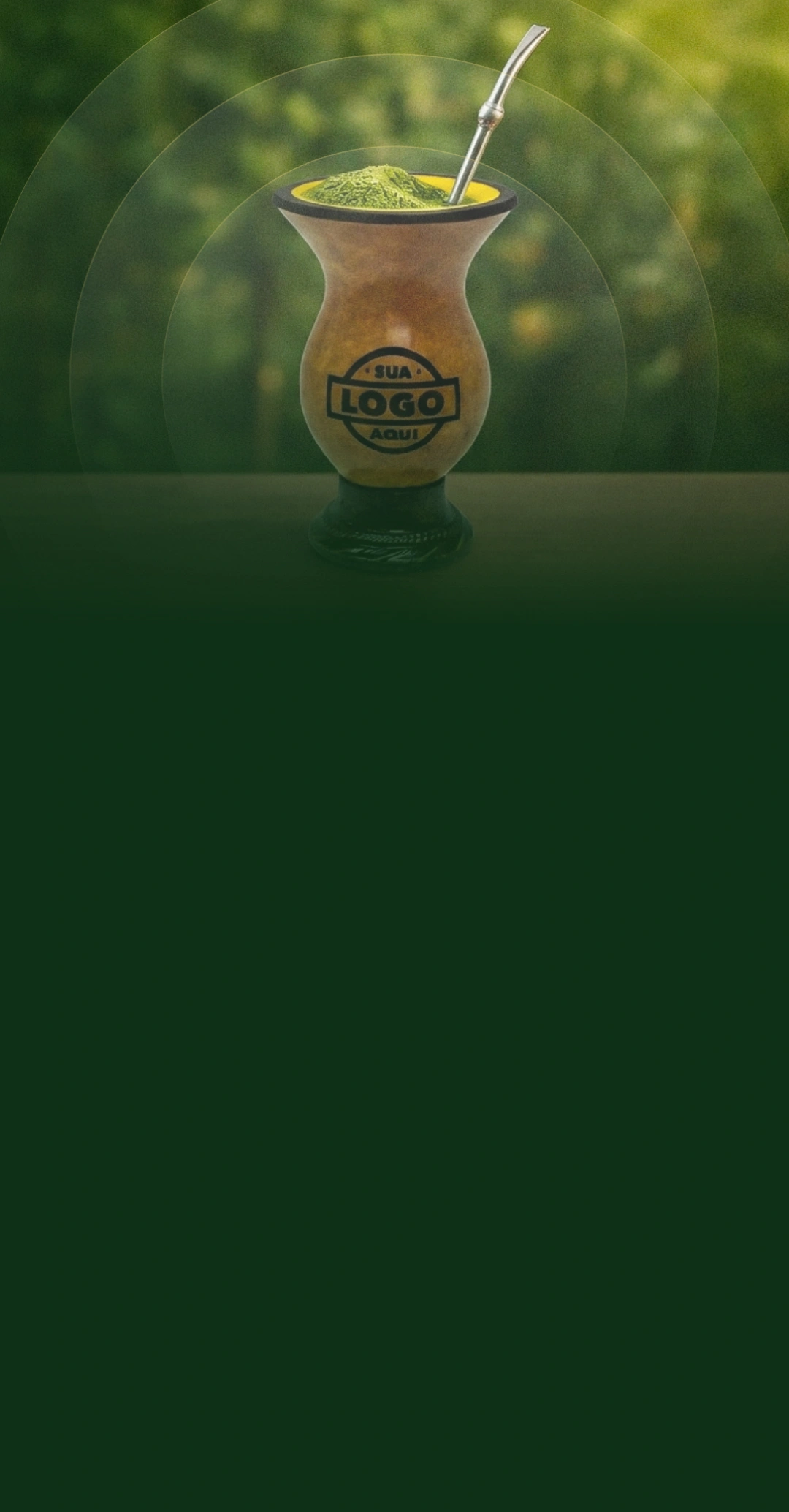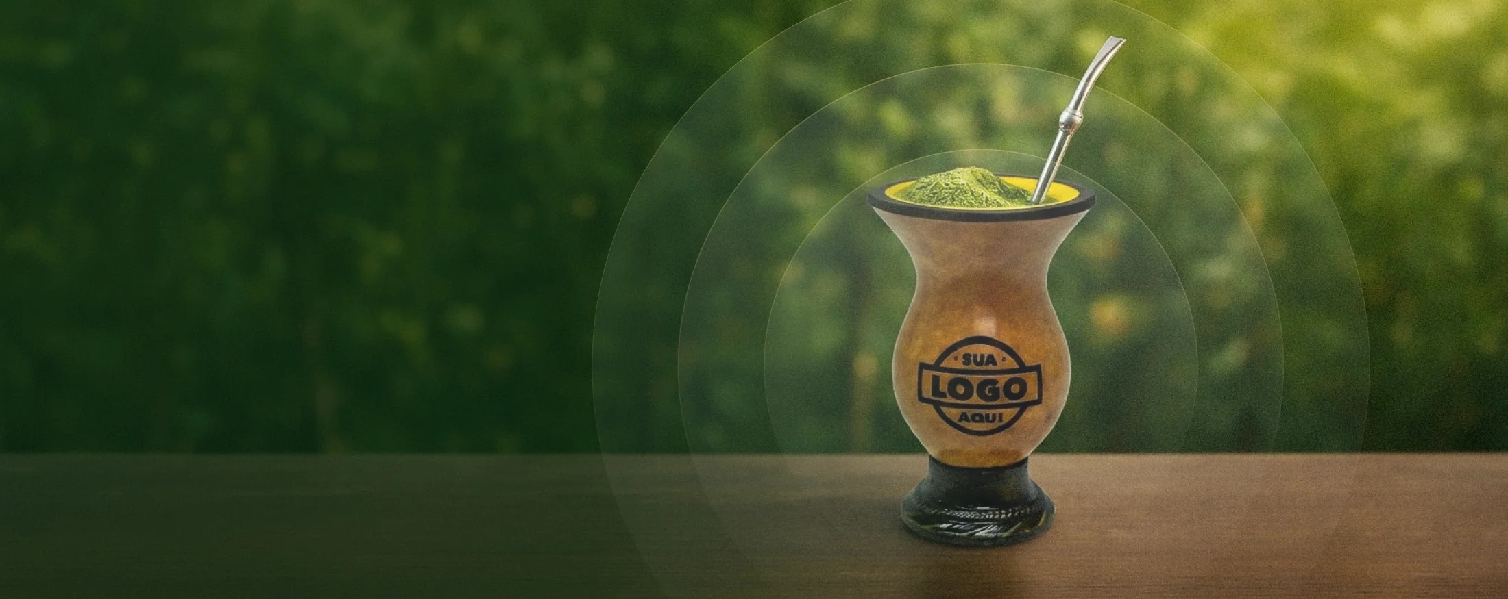 Preparamos uma arte com a tua logo na cuia escolhida. Tu aprova antes de qualquer coisa. Nada é produzido sem teu ok.
